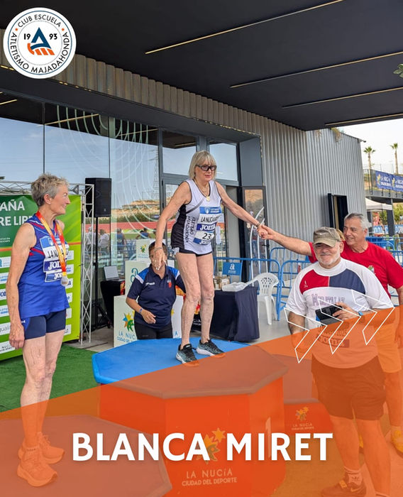 đ„oro: en la prueba de 200m para Sacha Ballesteros en la categoría M40, Doroteo Peinado en M65, y Juan Manuel Diaz en 100 y 200m M45, Blanca Miret en 100m en la categoría F80, haciendo récord de España y oro también para Beatriz Arias en triple salto F45...